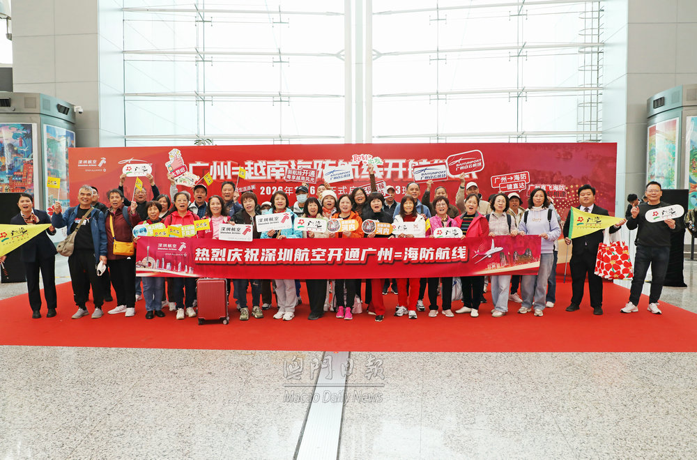 【澳門日報消息】廣州白雲國際機場今日聯合深圳航空在T1航站樓舉辦廣州直飛越南海防航線的開航儀式,該航線是廣州白雲國際機場2026年首條新開國際航線,也是深圳航空在新年佈局國際市場的開篇力作。