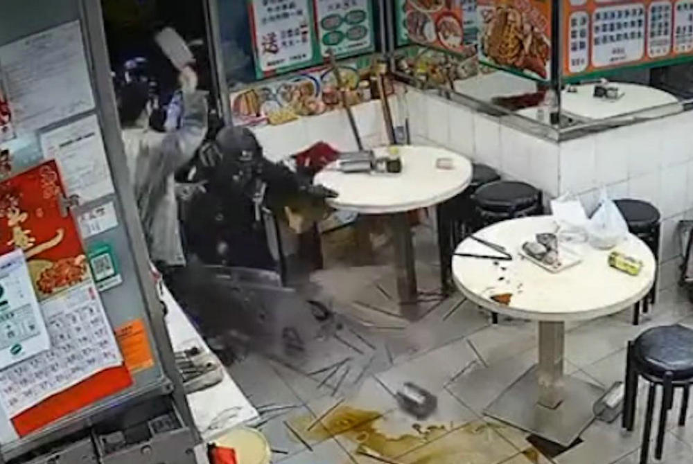 現場視頻顯示,事發餐廳內餐具掉落,一片凌亂,一名女子站在餐廳,手持菜刀指向門外。警員持盾牌破門而入,該女子手持菜刀劈向盾牌並試圖搶奪,還襲擊警員頭部,幸有頭盔阻擋。最終有警員從另一側入店,靠近女子後方,前後夾擊將女子制服。
