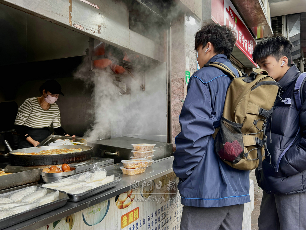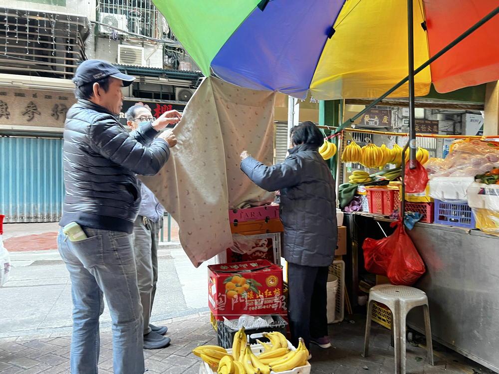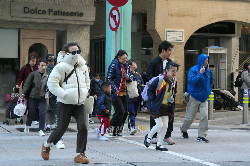 【澳門日報消息】寒潮來襲,氣象局大潭山氣象站今晨錄得最低氣溫九度,打破今年入冬最凍紀錄。明日最低氣溫預計仍是約九度,居民需注意保暖。 街外寒風刺骨,部分路段相當“食風”,讓人體感更冷,不少途人全副武裝,出動羽絨服、圍巾及冷帽禦寒。 內港一帶早上充滿煙火氣,有人排隊購買熱氣騰騰的蒸腸粉。街坊在食店歎一盅兩件並“打牙骹”,陸續有人外出買餸。由於風力頗大,有生果檔主在街坊協助下,架起布擋風。