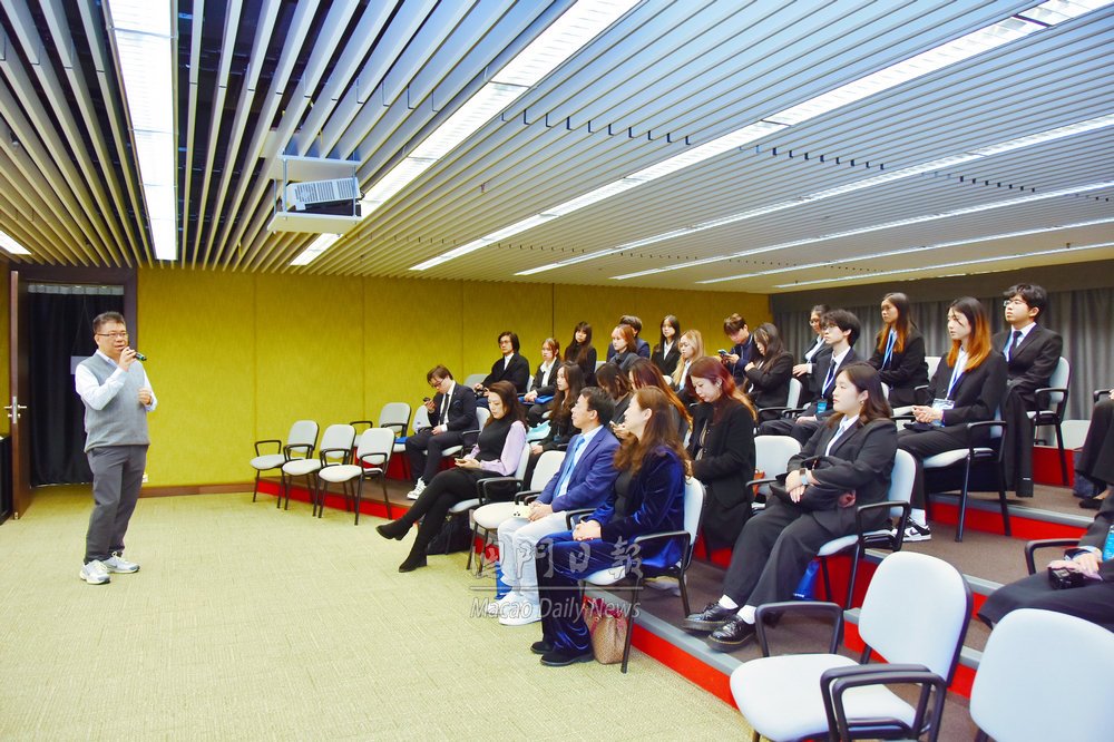 崔志濤介紹本報發展歷程和現況,提到隨著時代發展,本報持續創新求變,通過報網融合,吸引年輕讀者,提供更便捷閱讀體驗,其中短視頻方面包括與澳門理工大學合作製作的《澳門記憶》,以及新近推出的《澳日快趣》等特色欄目。他並向一行講述本澳新聞行業發展概況。