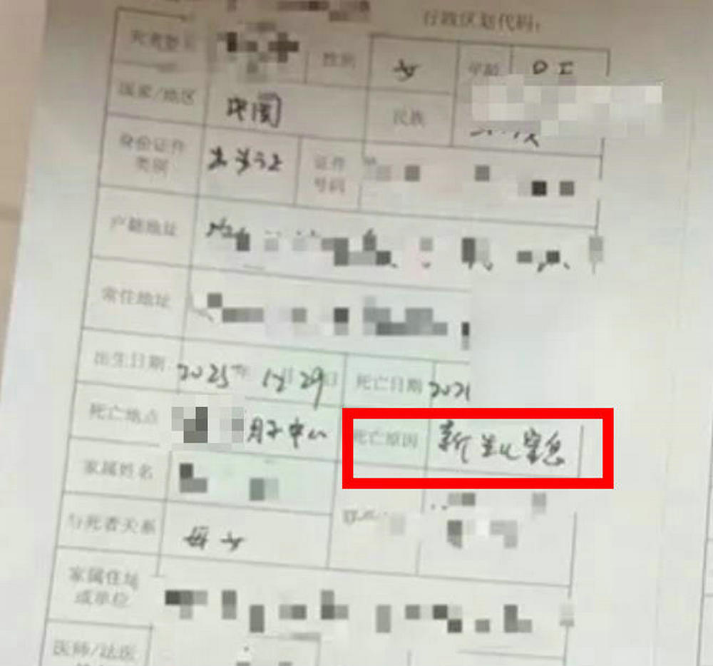 女子表示,本月3日入住茂名一家月子中心,入住四天女兒便在此離世。周二(6日)上午7時40分左右,月子中心工作人員稱BB不舒服,讓女子馬上起床帶去睇醫生,“我馬上穿衣服下樓,整個過程才五分鐘,我的寶寶就沒有心跳了”。死亡證明顯示,女嬰死亡原因為“新生兒窒息”。