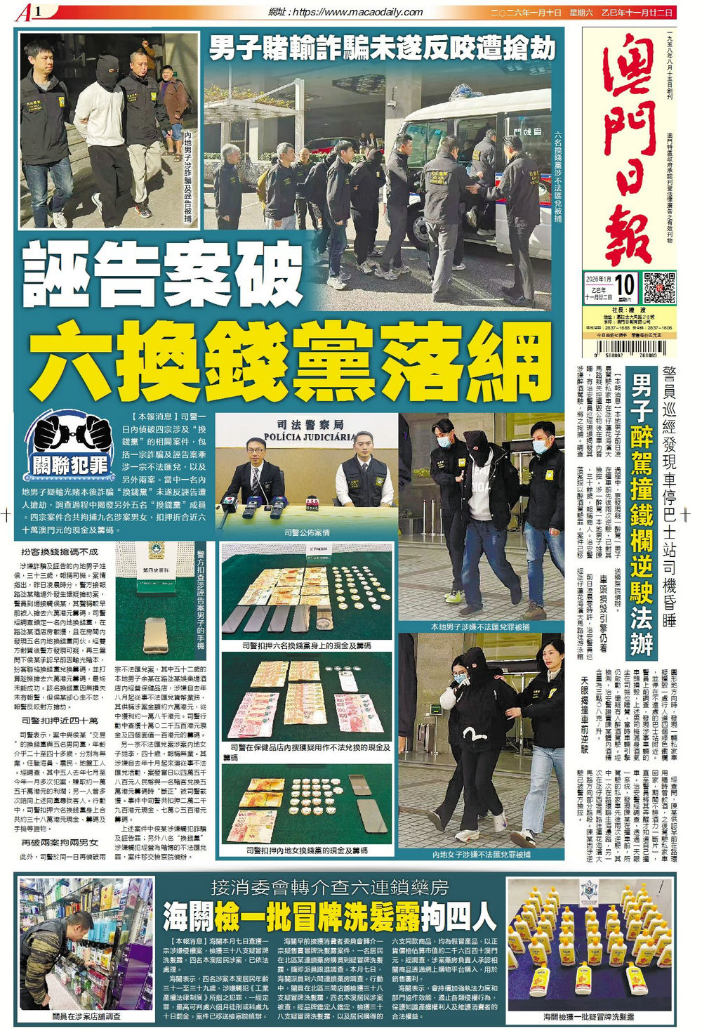 【澳聞頭條】誣告案破六換錢黨落網 【要聞頭條】王毅∶共同踐行多邊主義 【經濟頭條】去年旅遊價指升1.71% 【體育頭條】澳籃粵澳盃不敵廣東