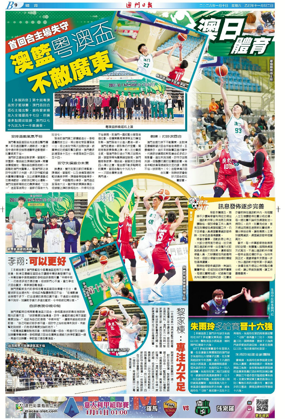 澳籃粵澳盃不敵廣東 黎家棟:專注力不足 李翔:可以更好 訊息發佈逐步完善 朱雨玲多哈賽晉十六強