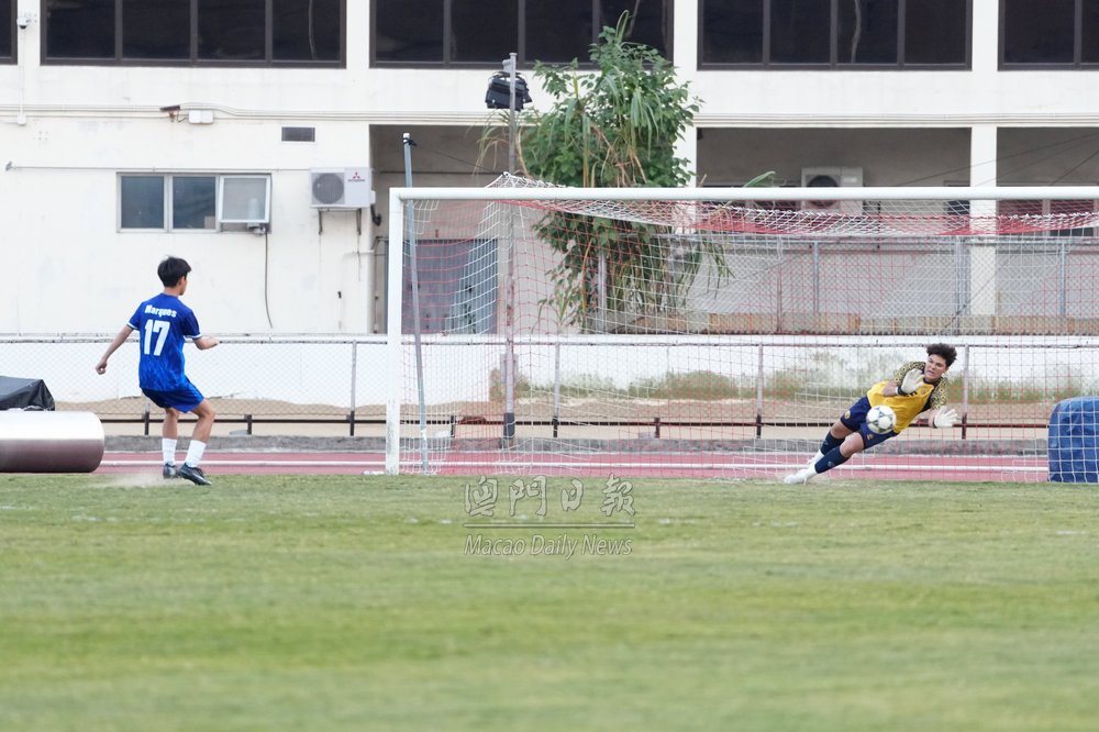 【澳門日報消息】學界足球男A八強戰,上屆冠軍葡文學校驚險晉級。 學足男A今日下午2時在蓮峰球場展開八強戰。衛冕的葡文學校迎戰慈幼中學,葡文學校大部分時間得勢不得分,完場前隊長迪亞斯兩黃一紅被逐,兩隊法定時間70分鐘內互無記錄。葡文學校門將哥斯達在互射極刑兩救十二碼做英雄,帶領球隊闖入四強。 另一戰,四屆冠軍聖公會鬥利瑪竇,何鍶朗上半場一箭定江山,聖公會1:0小勝利瑪竇晉級。