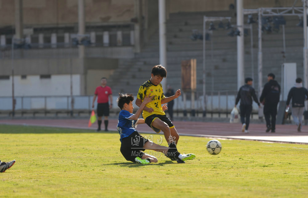【澳門日報消息】學界足球男A八強戰今日舉行,上屆亞軍澳大附屬聯同粵華晉級四強。 學足男A今日下午2時在蓮峰球場上演兩場八強戰。上屆亞軍澳大附屬在尾場迎戰聯國學校,澳大附屬全場形勢佔優,趙梓誠、李卓楠、葉承憲各建一功,澳大附屬3:0輕取聯國晉級。粵華靠林米琪梅開二度,4:1擊敗氹仔坊眾殺入準決賽。