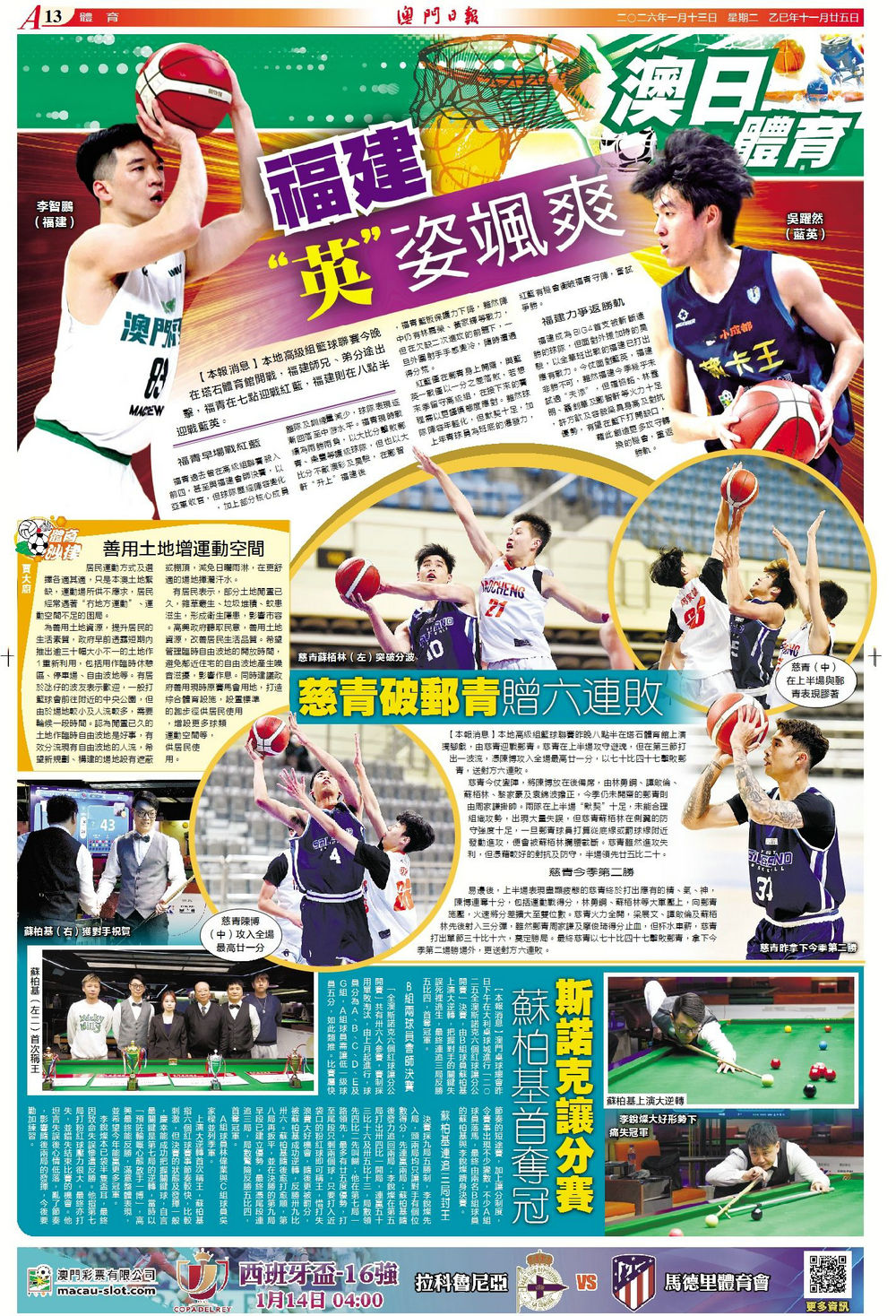 福建“英”姿颯爽 慈青破郵青贈六連敗 善用土地增運動空間 斯諾克讓分賽蘇柏基首奪冠
